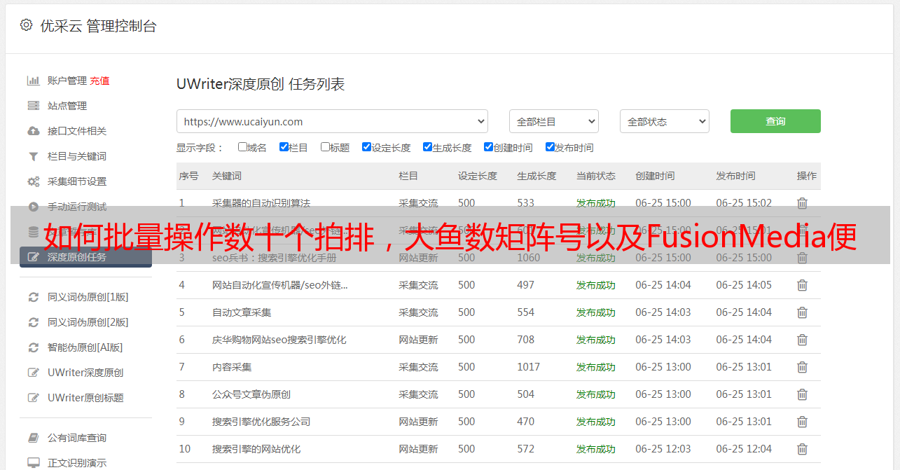 如何批量操作数十个拍排,大鱼数矩阵号以及FusionMedia便捷的操作系统推荐