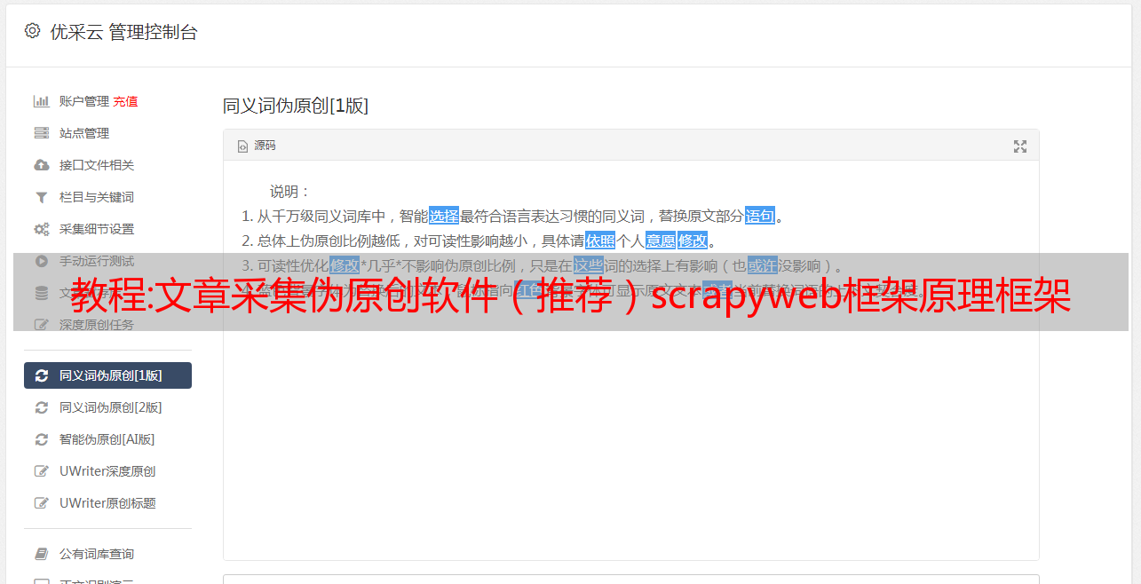 教程:文章采集伪原创软件(推荐)scrapyweb框架原理框架