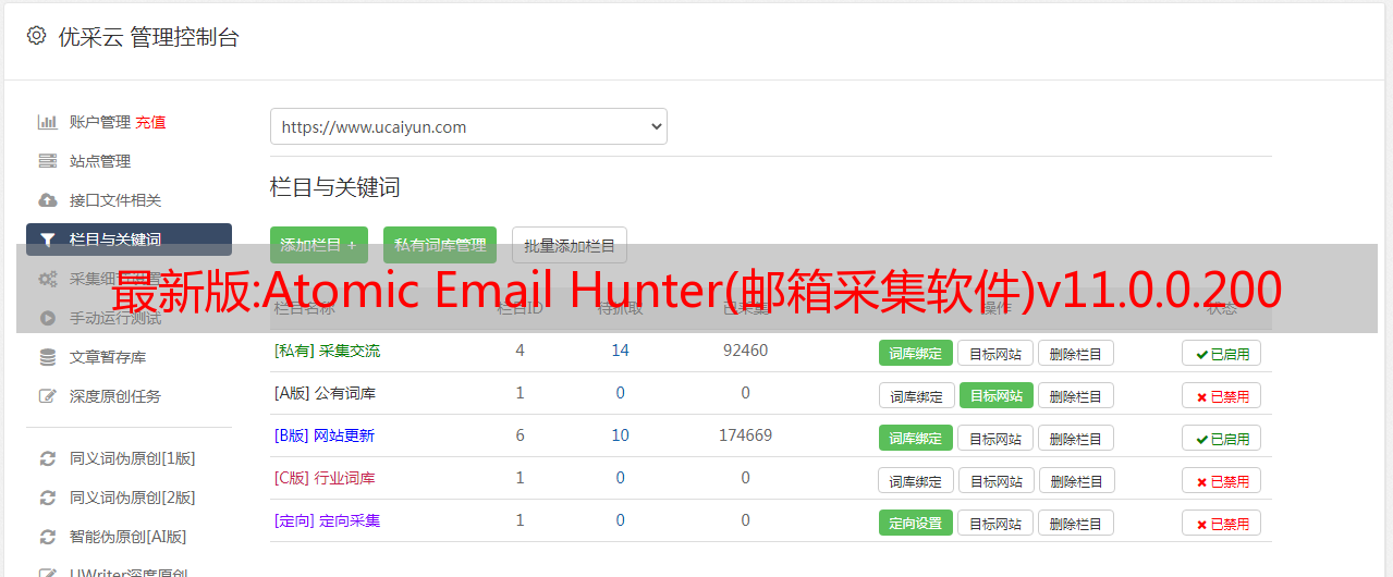 优采云 发布时间: 2022-10-25 07:17最新版:Atomic Email Hunter(邮箱采集软件)v11.0.0.200