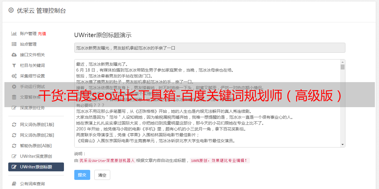 优采云 发布时间: 2022-10-25 12:15干货:百度seo站长工具箱-百度关键词规划师(高级版)