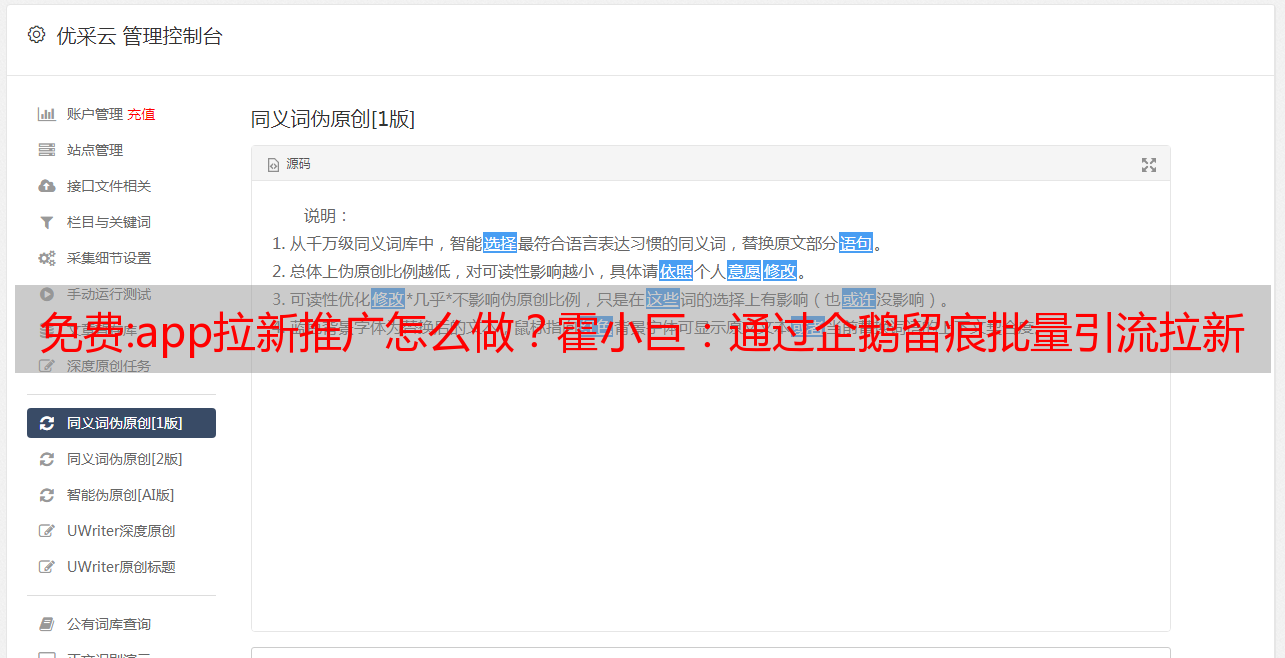 优采云 发布时间: 2022-10-25 21:20免费:app拉新推广怎么做?霍小巨:通过企鹅留痕批量引流拉新