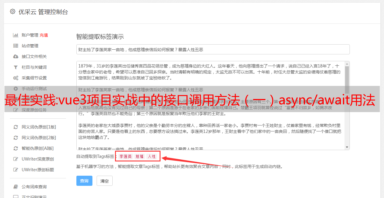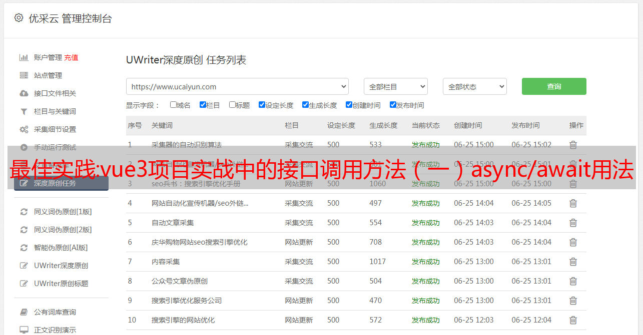 优采云 发布时间: 2022-10-26 03:53最佳实践:vue3项目实战中的接口调用方法(一)async/await用法 对axios二