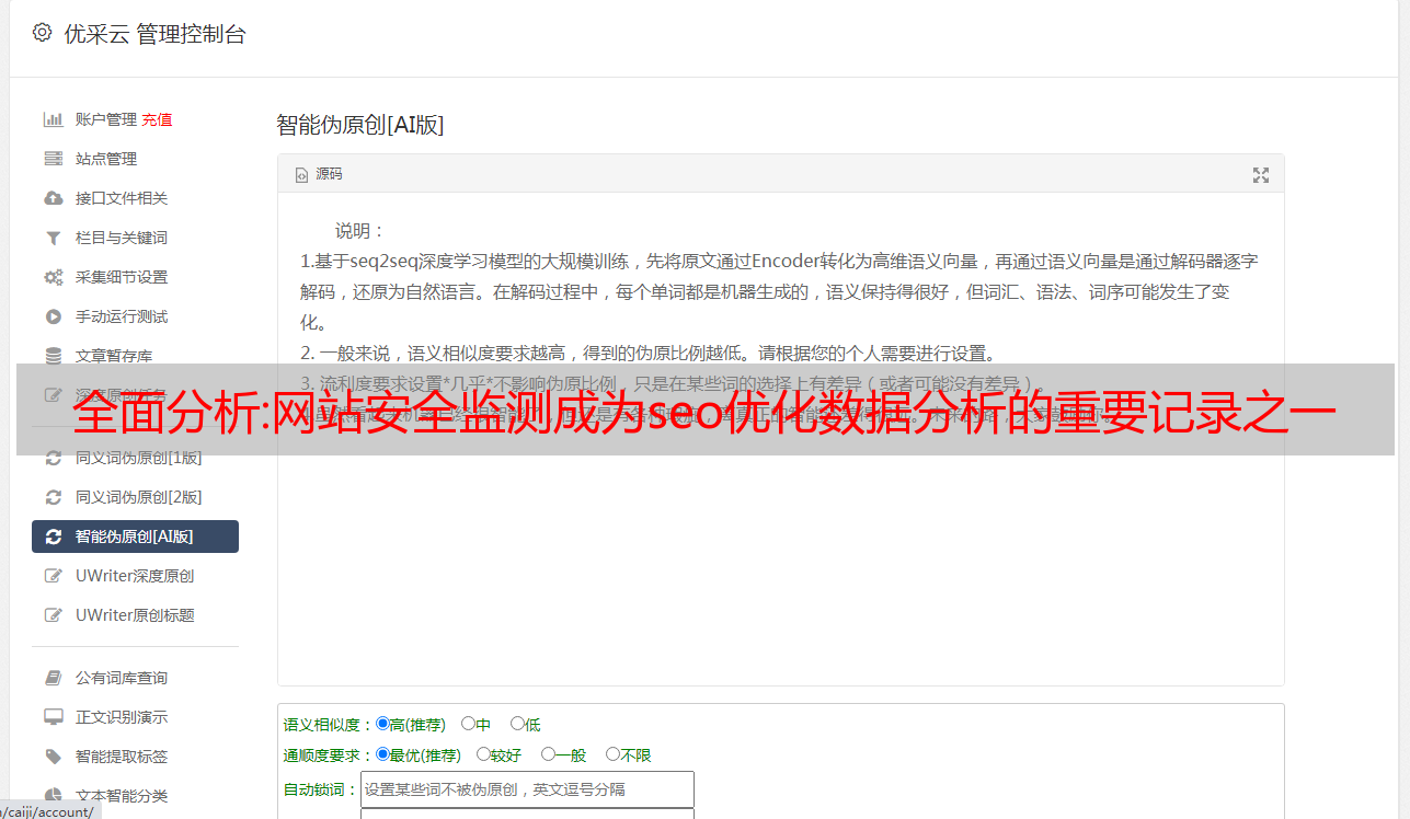 优采云 发布时间: 2022-10-26 12:47全面分析:网站安全监测成为seo优化数据分析的重要记录之一
