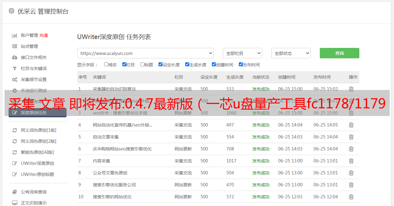 优采云 发布时间: 2022-10-26 16:40采集 文章 即将发布:0.4.7最新版(一芯u盘量产工具fc1178/1179).