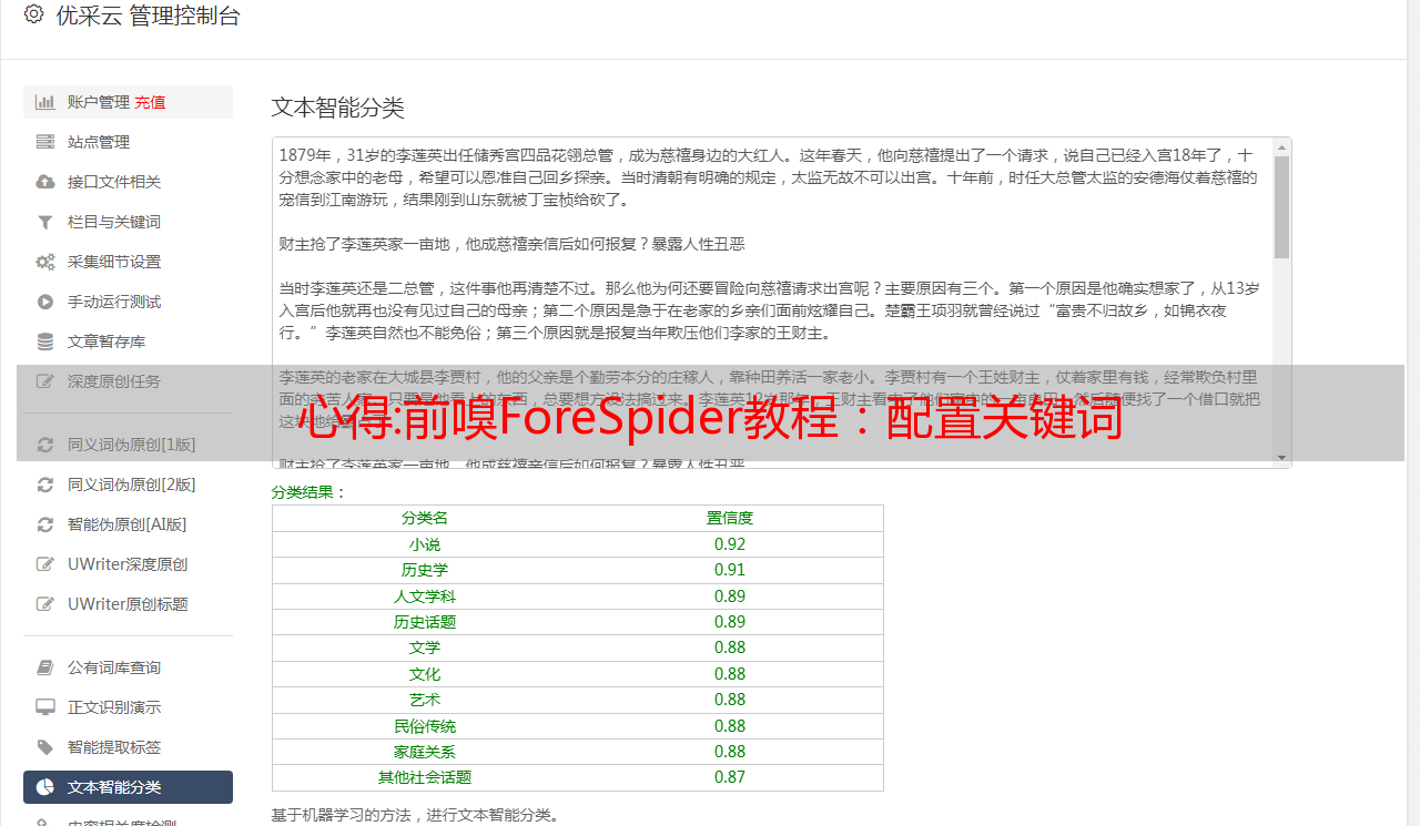 优采云 发布时间: 2022-10-26 17:49心得:前嗅ForeSpider教程:配置关键词