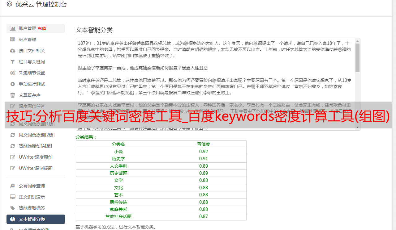 优采云 发布时间: 2022-10-26 18:14技巧:分析百度关键词密度工具_百度keywords密度计算工具(组图)