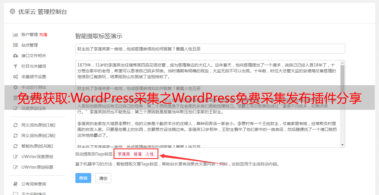优采云 发布时间: 2022-10-26 20:41免费获取:WordPress采集之WordPress免费采集发布插件分享