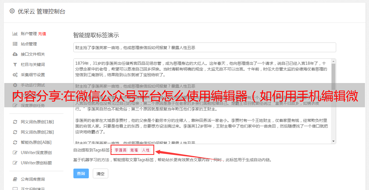 网站标签保留可以在伪原创时为我们提供更好的用户体验。无论是数据提取还是文章的重新创建,都将帮助我们创建自己的文章。