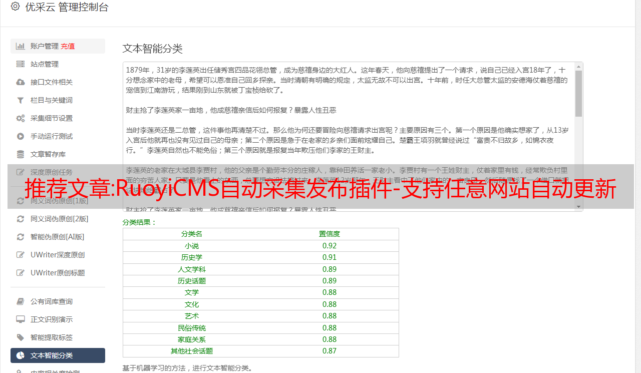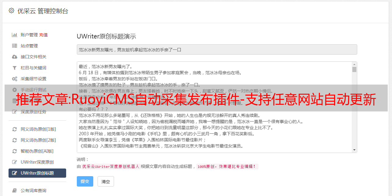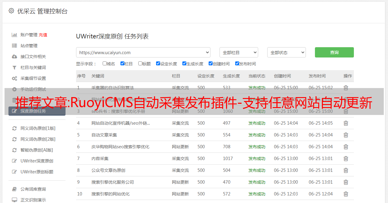 优采云 发布时间: 2022-10-27 11:35推荐文章:RuoyiCMS自动采集发布插件-支持任意网站自动更新文章