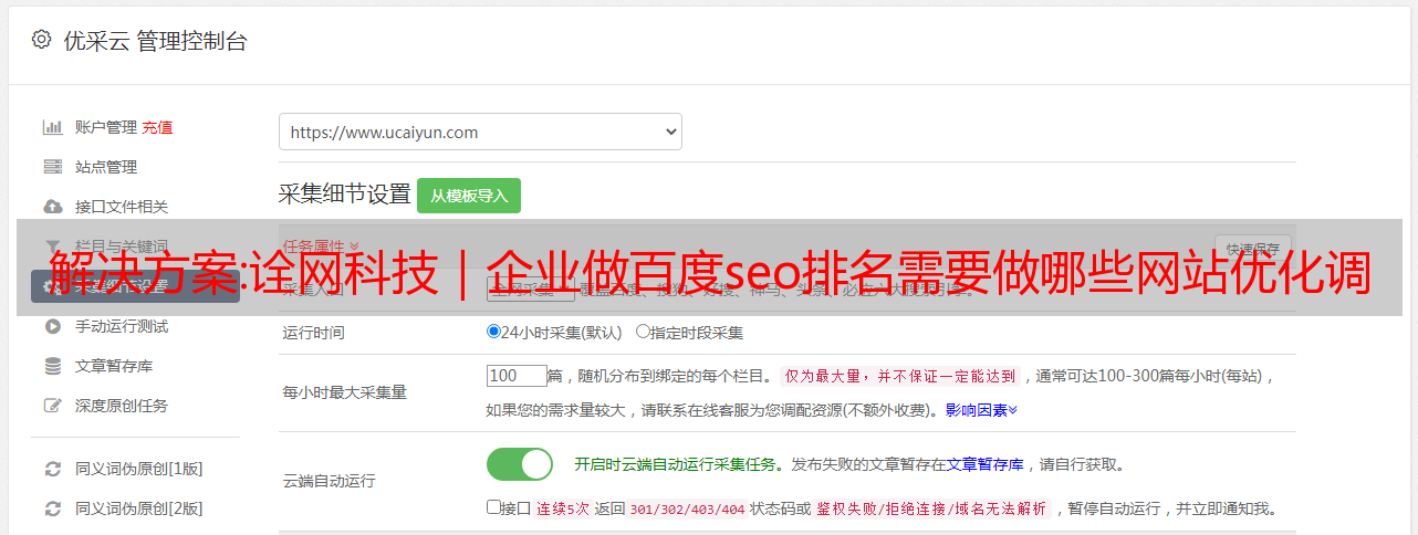 优采云 发布时间: 2022-10-27 21:32解决方案:诠网科技|企业做百度seo排名需要做哪些网站优化调整?