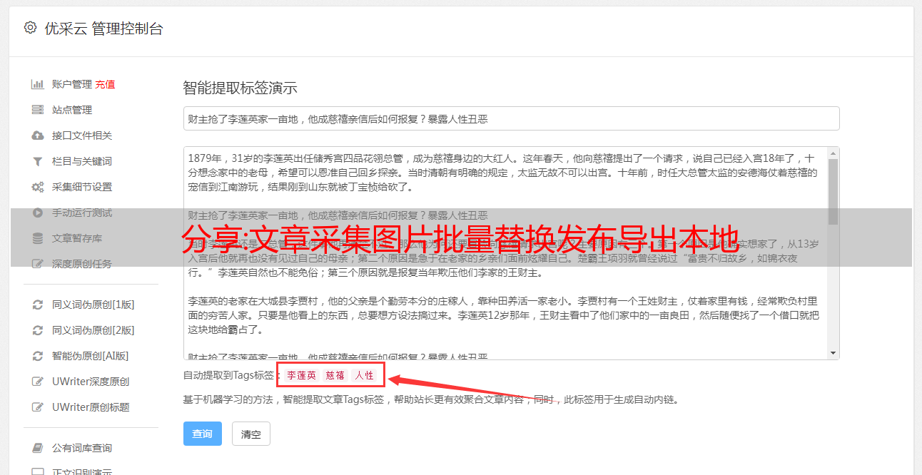 优采云 发布时间: 2022-10-27 21:33分享:文章采集图片批量替换发布导出本地
