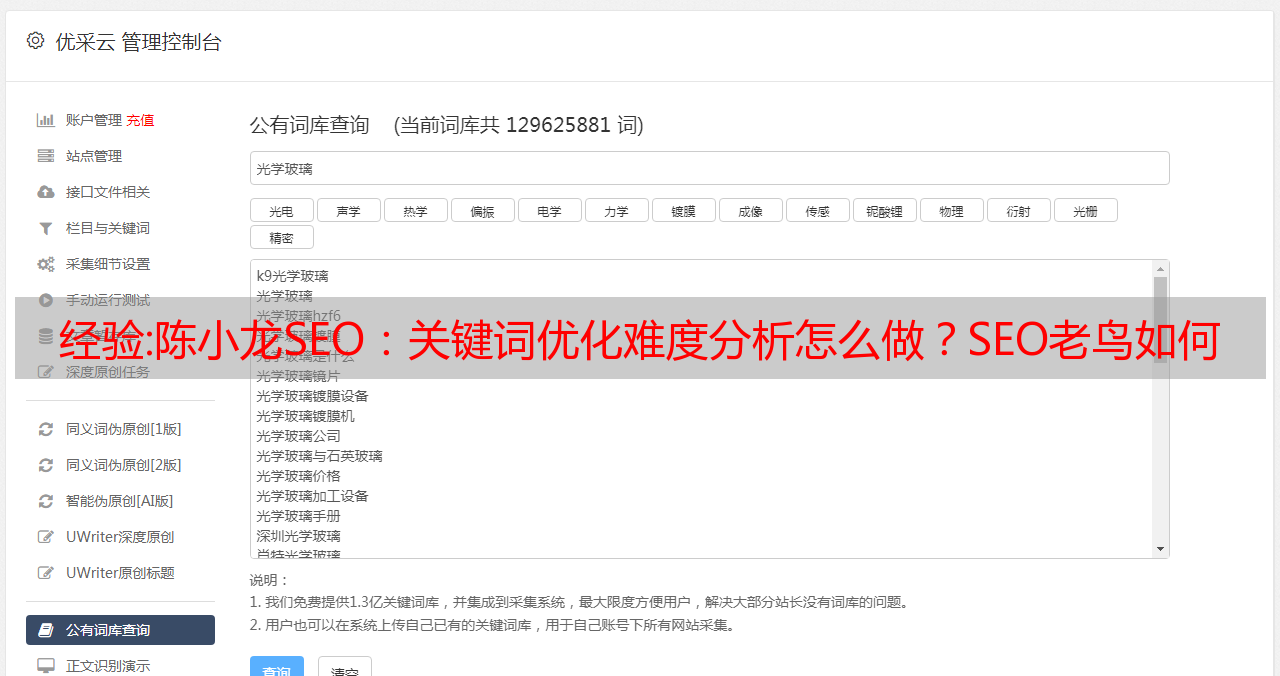 经验:陈小龙SEO:关键词优化难度分析怎么做?SEO老鸟如何一键筛选优质关键词