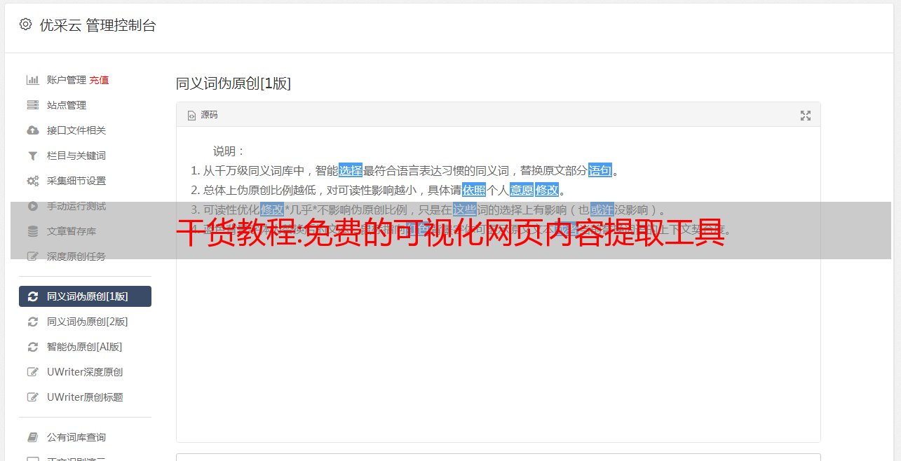 优采云 发布时间: 2022-10-27 23:16干货教程:免费的可视化网页内容提取工具