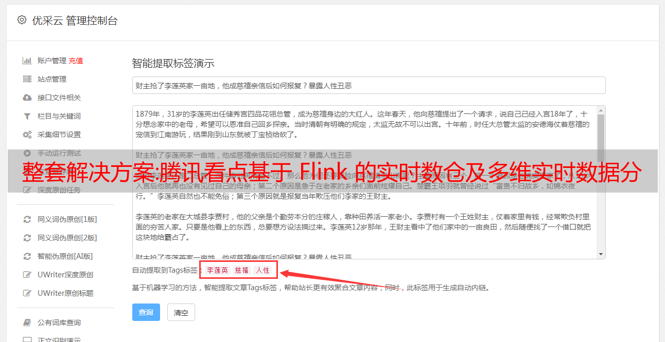 优采云 发布时间: 2022-10-28 07:20整套解决方案:腾讯看点基于 Flink 的实时数仓及多维实时数据分析实践