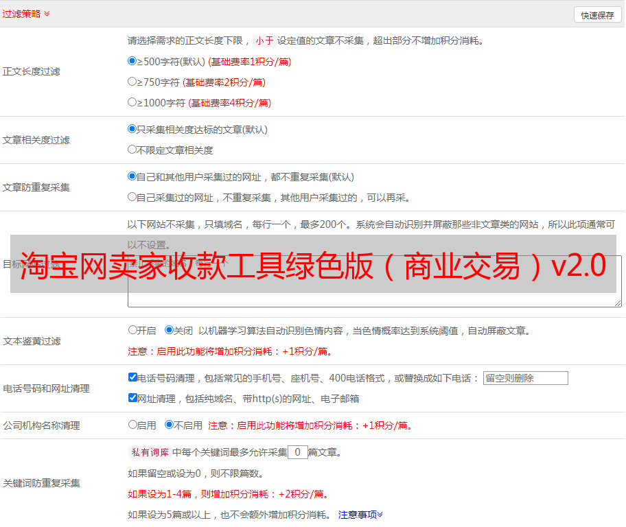 优采云 发布时间: 2020-08-07 08:08管理淘宝商店具有许*敏*感*词*. 淘宝网卖家采集工具是一种可以为淘宝卖家批量采集关键字的工具. 最新版本的淘宝网卖家采集工具具有许*敏*感*词*,可以为您管理大量产品信息,并立即下载.