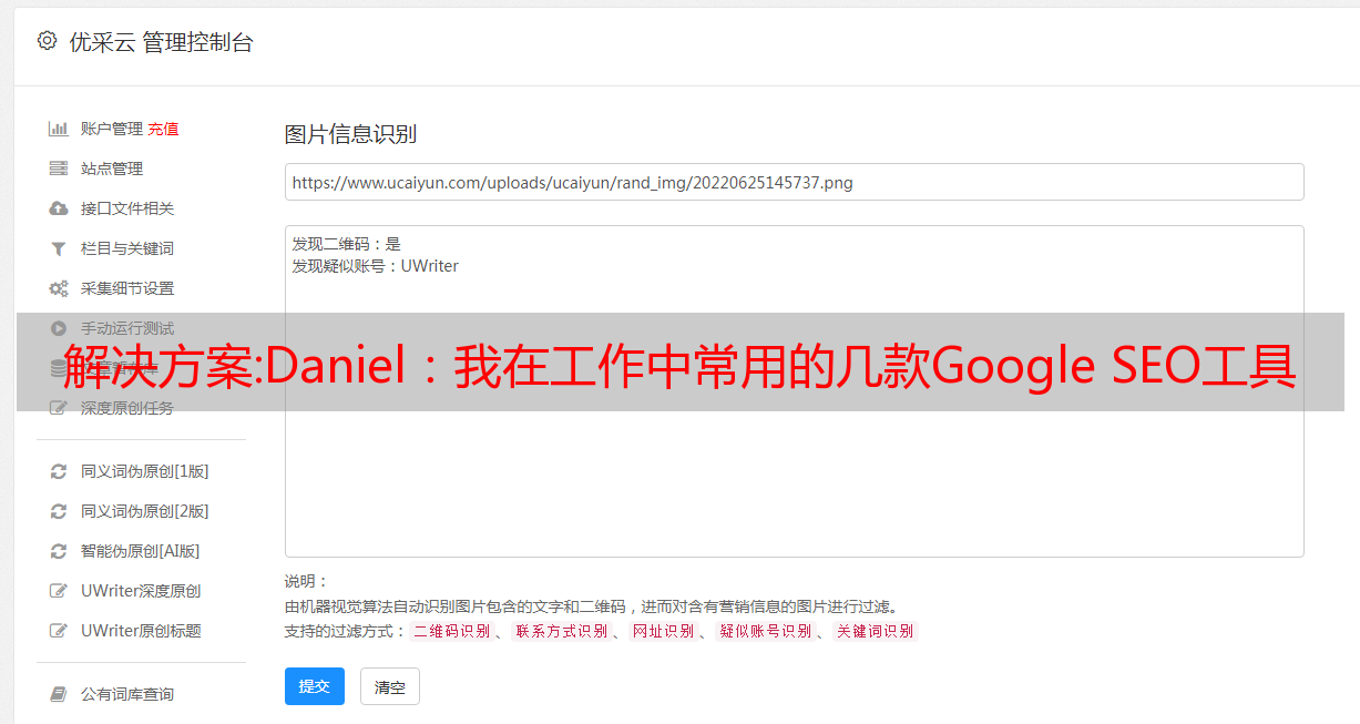 优采云 发布时间: 2022-10-28 21:06解决方案:Daniel:我在工作中常用的几款Google SEO工具