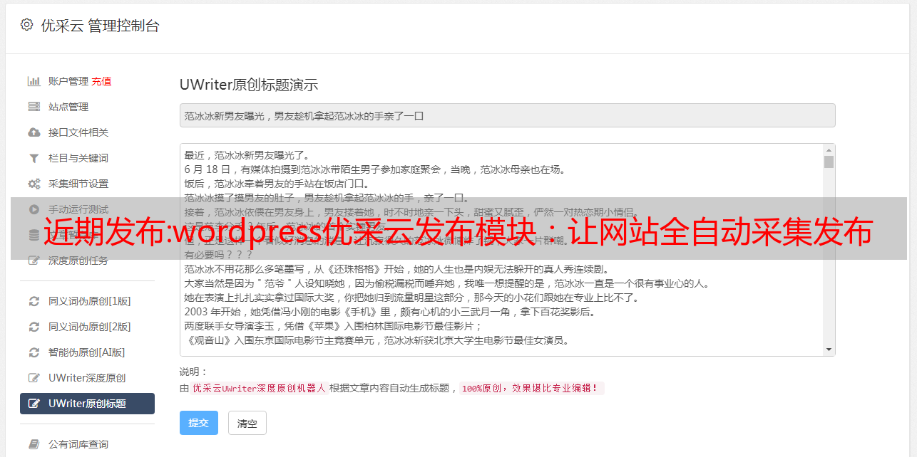 近期发布:wordpress优采云发布模块:让网站全自动采集发布+自动推送收录