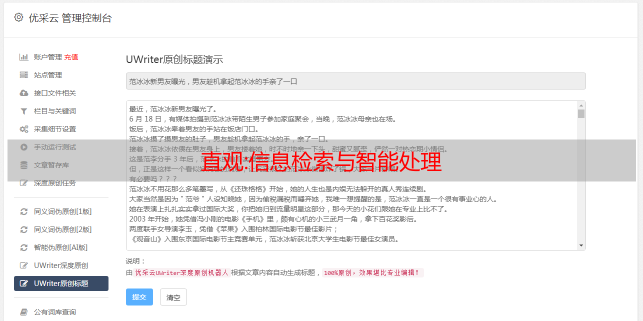 优采云 发布时间: 2022-10-29 02:29直观:信息检索与智能处理
