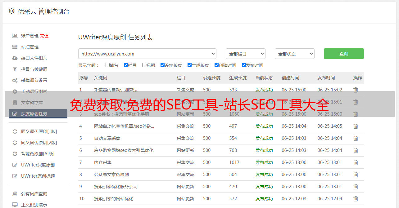 优采云 发布时间: 2022-10-29 03:24免费获取:免费的SEO工具-站长SEO工具大全