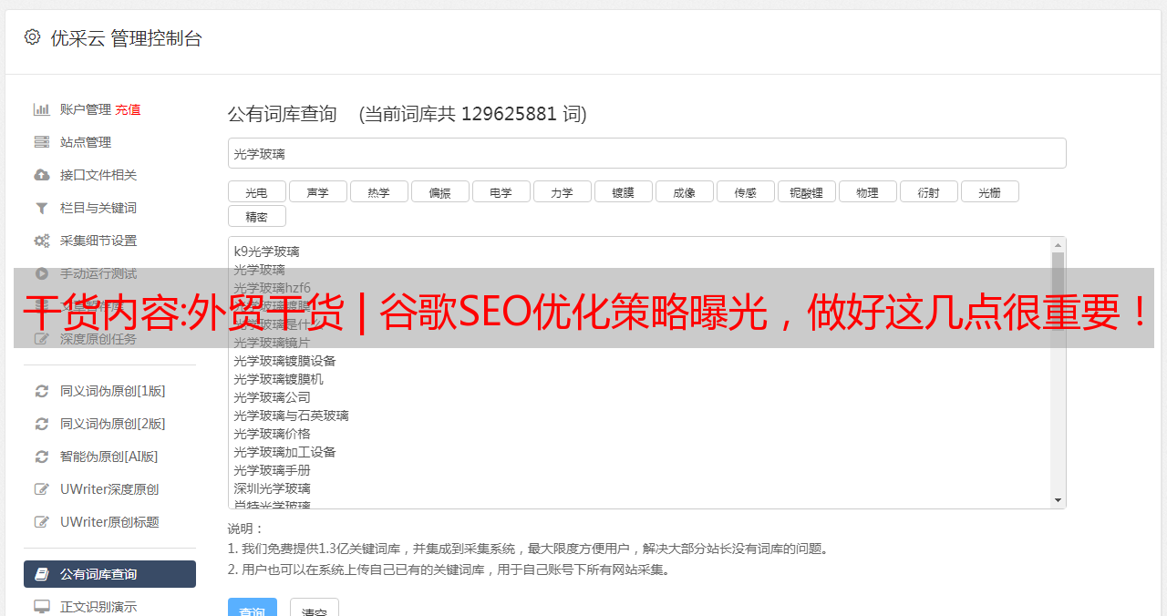 优采云 发布时间: 2022-10-29 04:34干货内容:外贸干货 | 谷歌SEO优化策略曝光,做好这几点很重要!