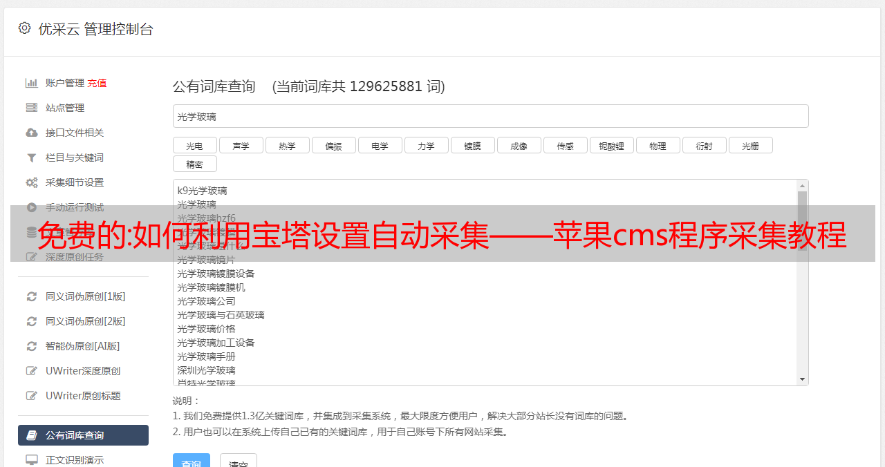 优采云 发布时间: 2022-10-29 05:20免费的:如何利用宝塔设置自动采集——苹果cms程序采集教程