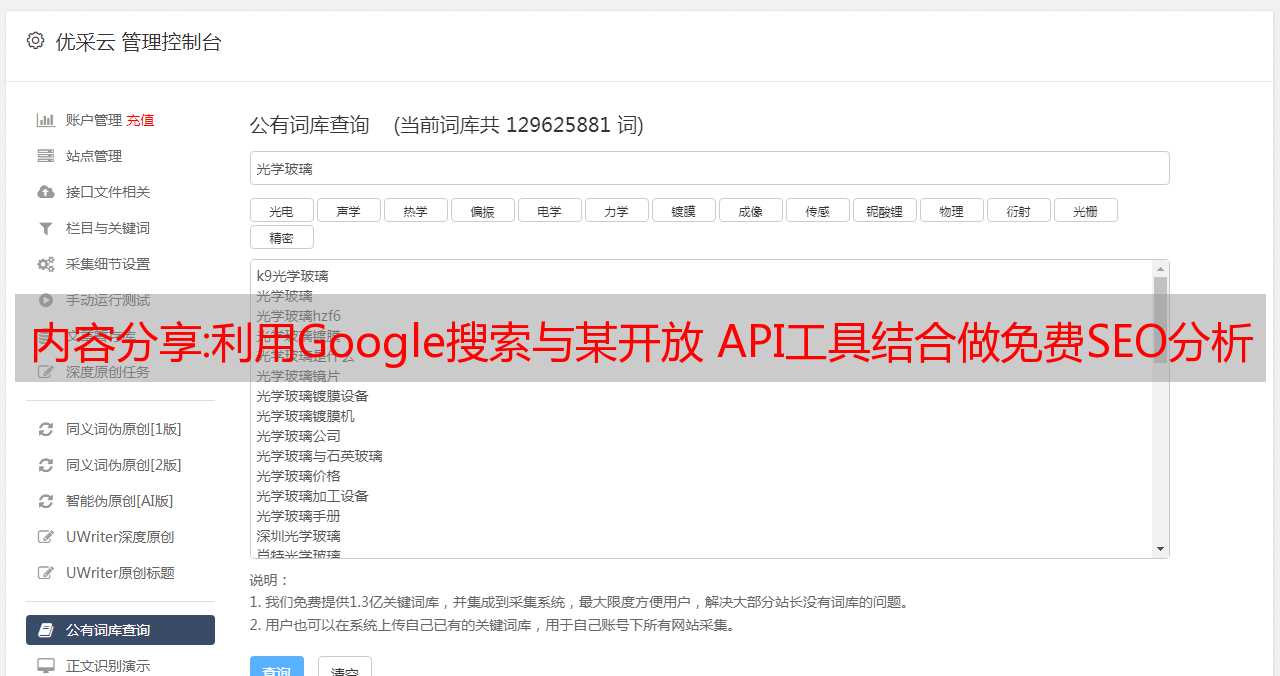 优采云 发布时间: 2022-10-29 12:28内容分享:利用Google搜索与某开放 API工具结合做免费SEO分析