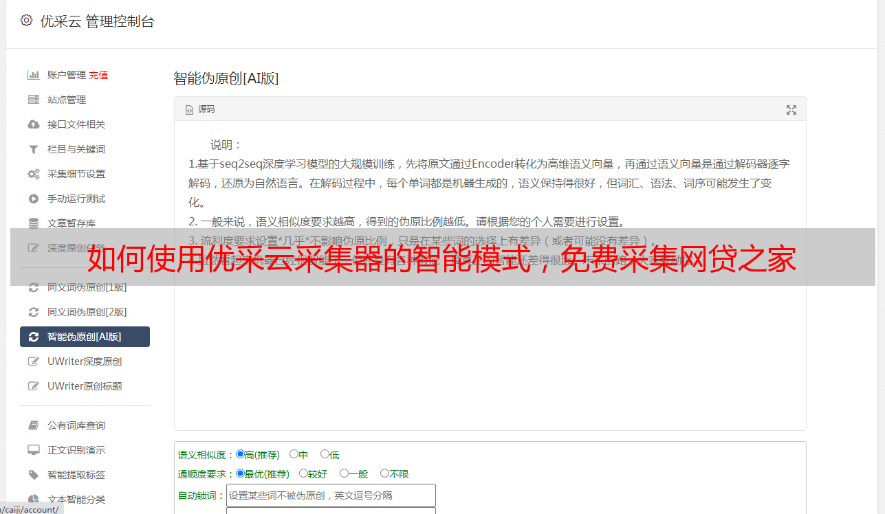 如何使用优采云采集器的智能模式,免费采集网贷之家
