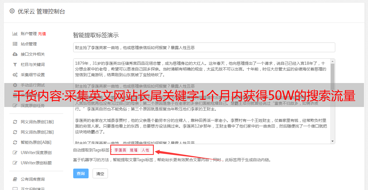 干货内容:采集英文网站长尾关键字1个月内获得50W的搜索流量