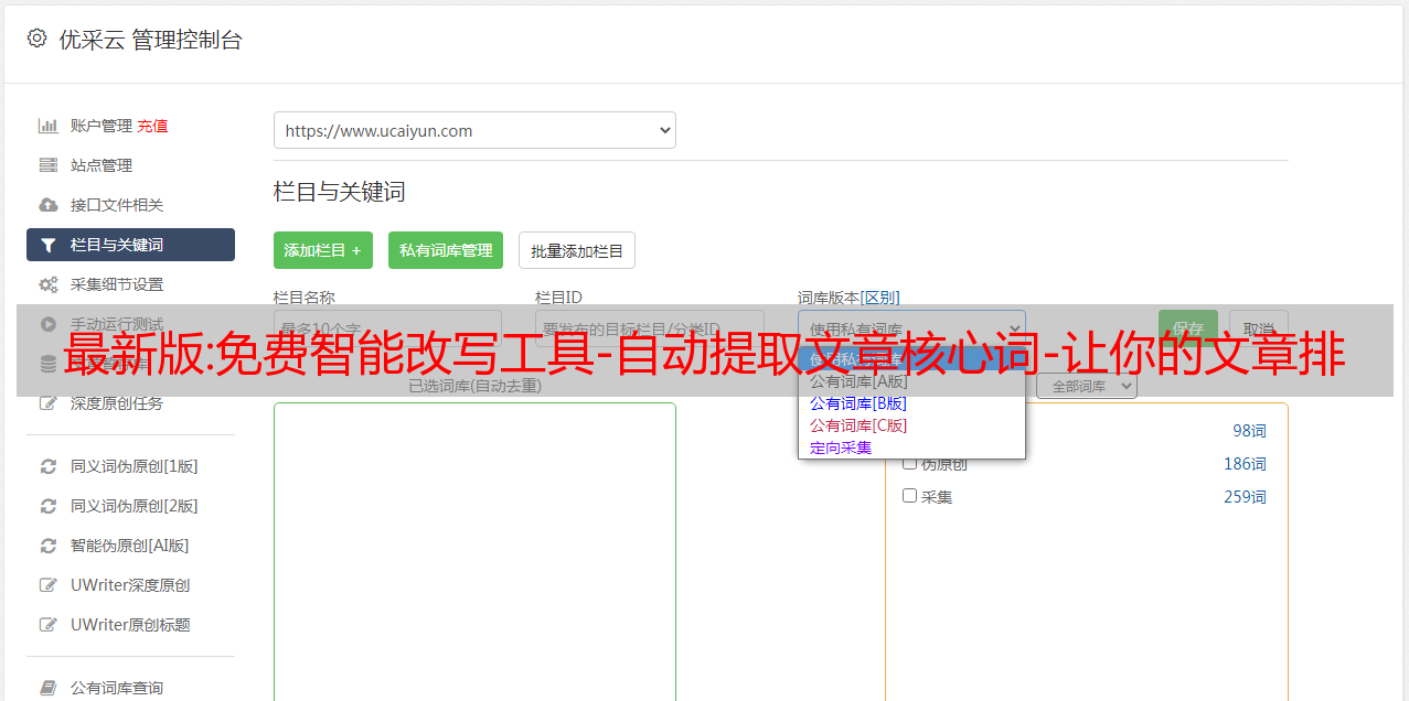 最新版:免费智能改写工具-自动提取文章核心词-让你的文章排名首页