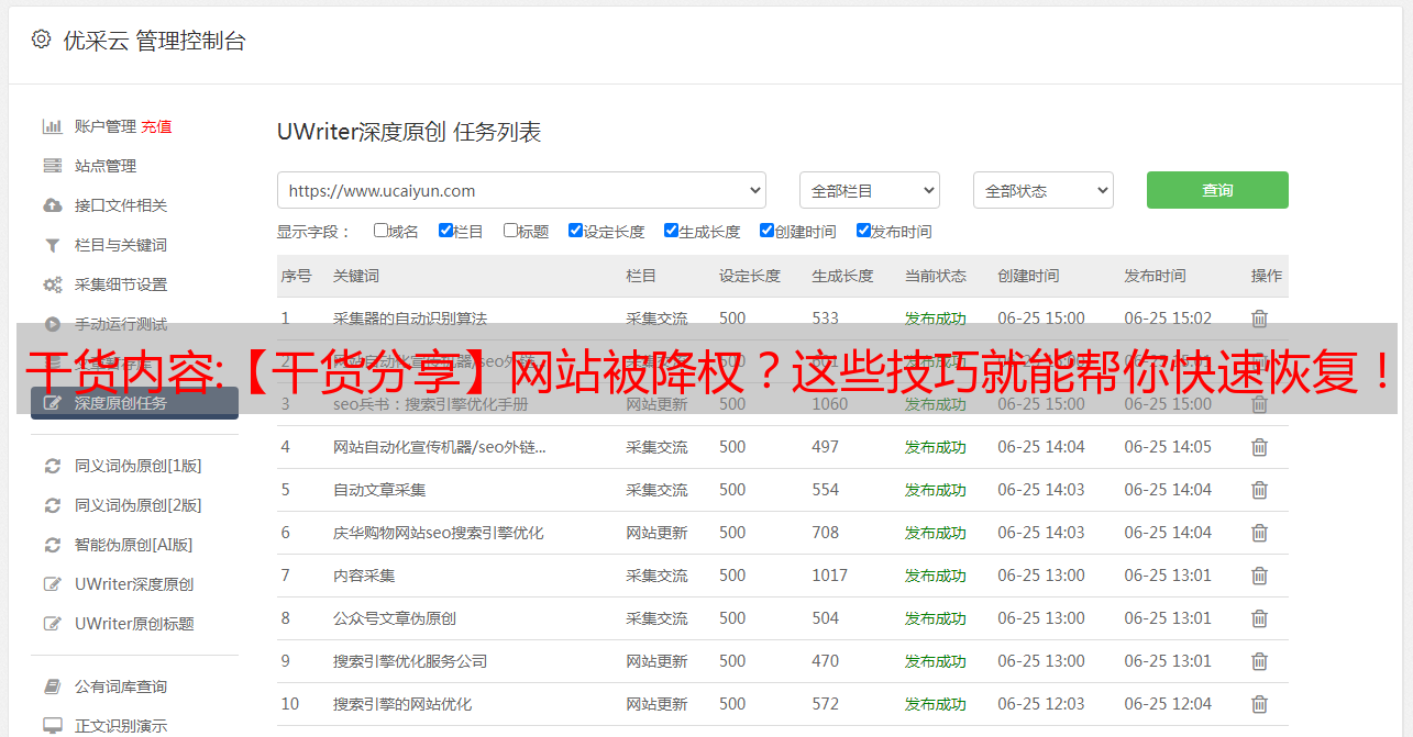 优采云 发布时间: 2022-10-30 05:09干货内容:【干货分享】网站被降权?这些技巧就能帮你快速恢复!