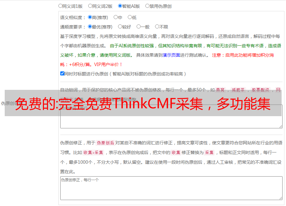 免费的:完全免费ThinkCMF采集,*敏*感*词*集成(附下载)