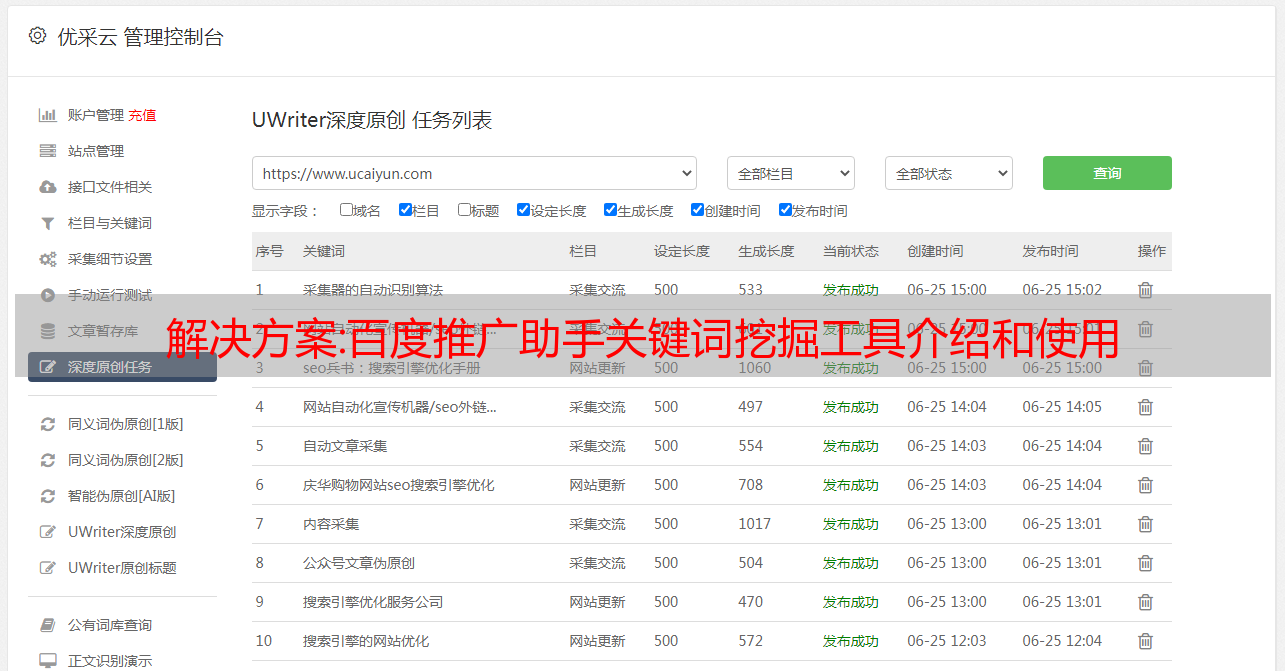 优采云 发布时间: 2022-10-30 23:23解决方案:百度推广助手关键词挖掘工具介绍和使用