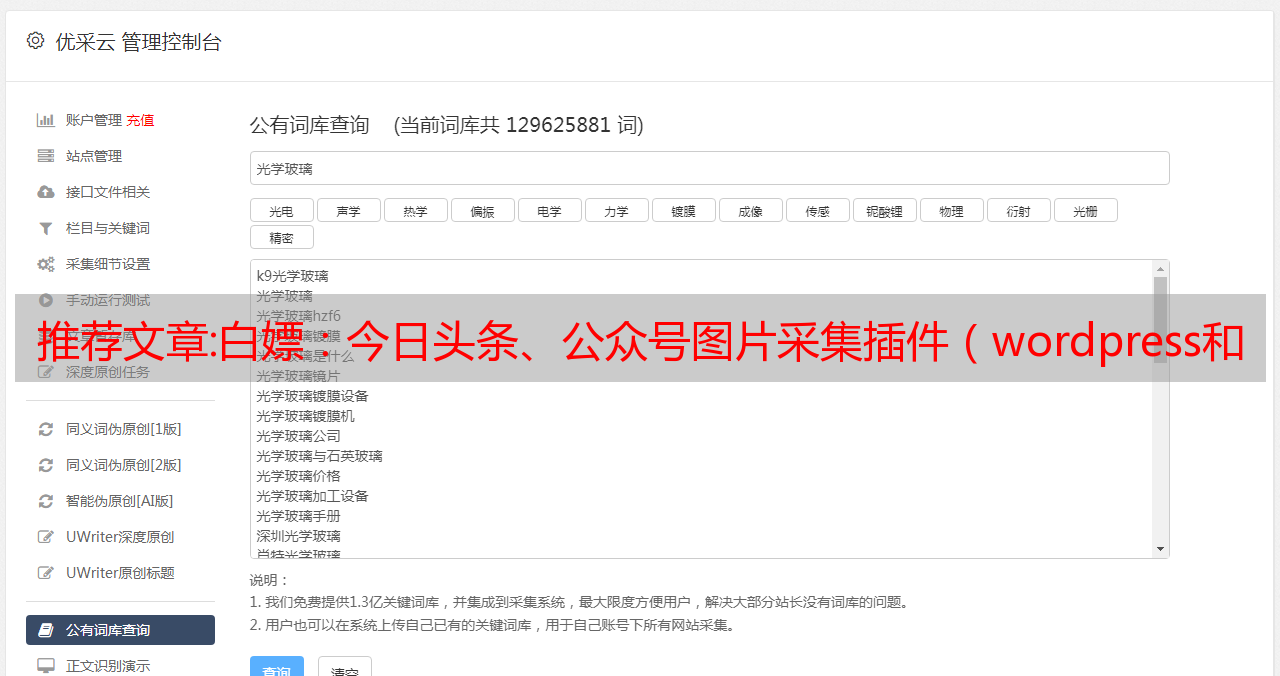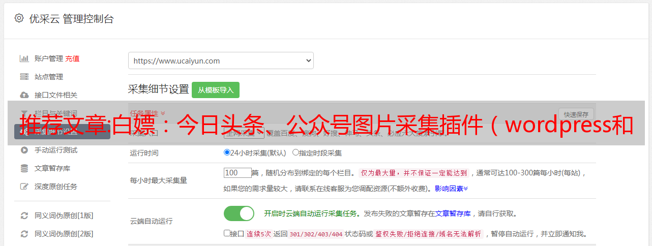 推荐文章:白嫖:今日头条、公众号图片采集插件(wordpress和织梦)