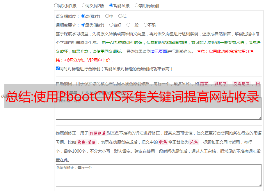 4、伪原创保留字(当文章原创未被伪原创使用时设置核心字)