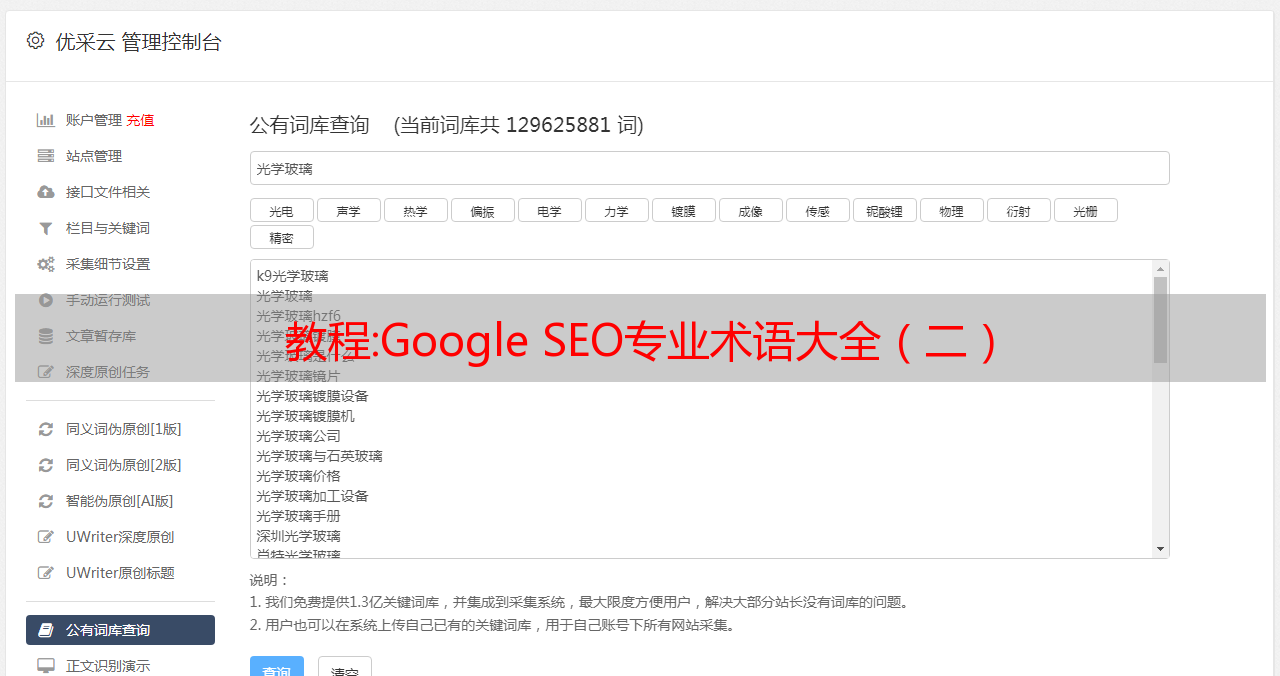 优采云 发布时间: 2022-10-31 04:26教程:Google SEO专业术语大全(二)