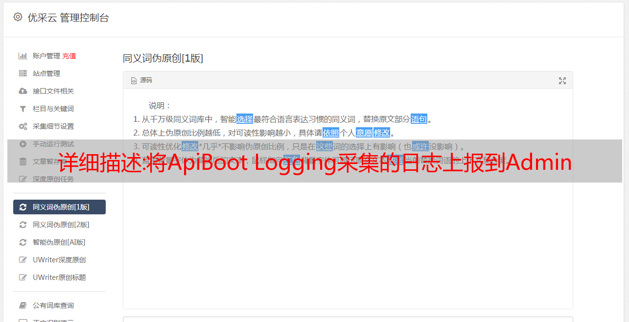 优采云 发布时间: 2022-10-31 05:15详细描述:将ApiBoot Logging采集的日志上报到Admin