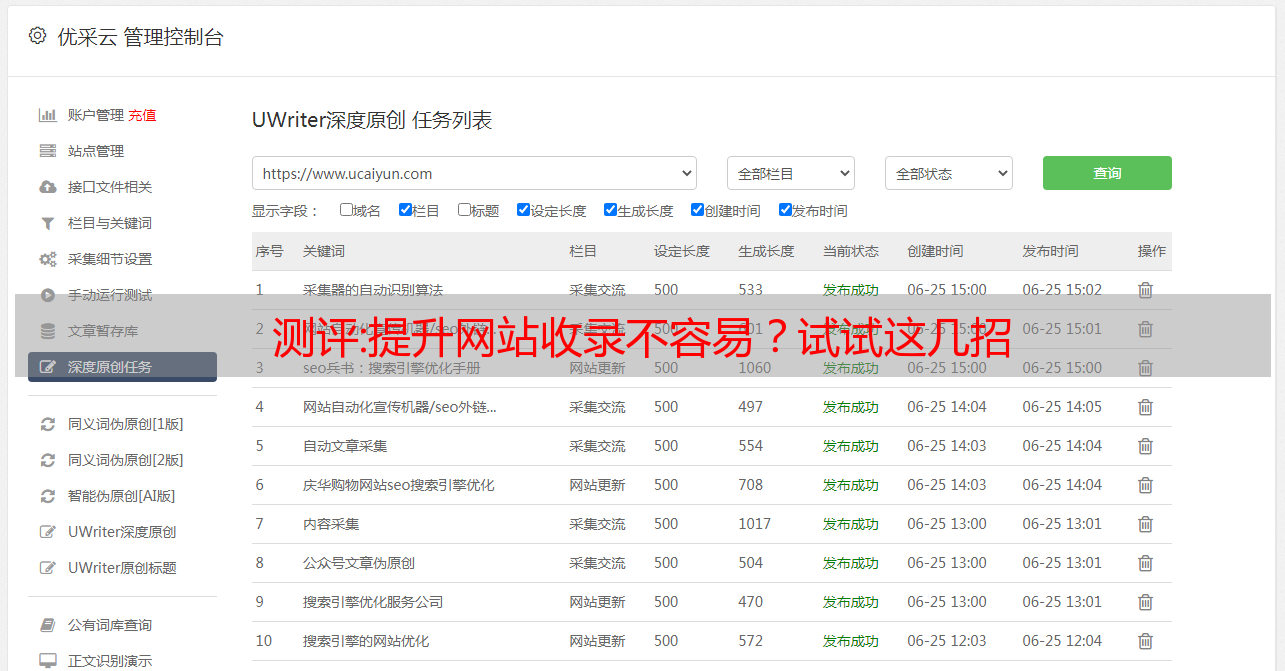 优采云 发布时间: 2022-10-31 06:13测评:提升网站收录不容易?试试这几招