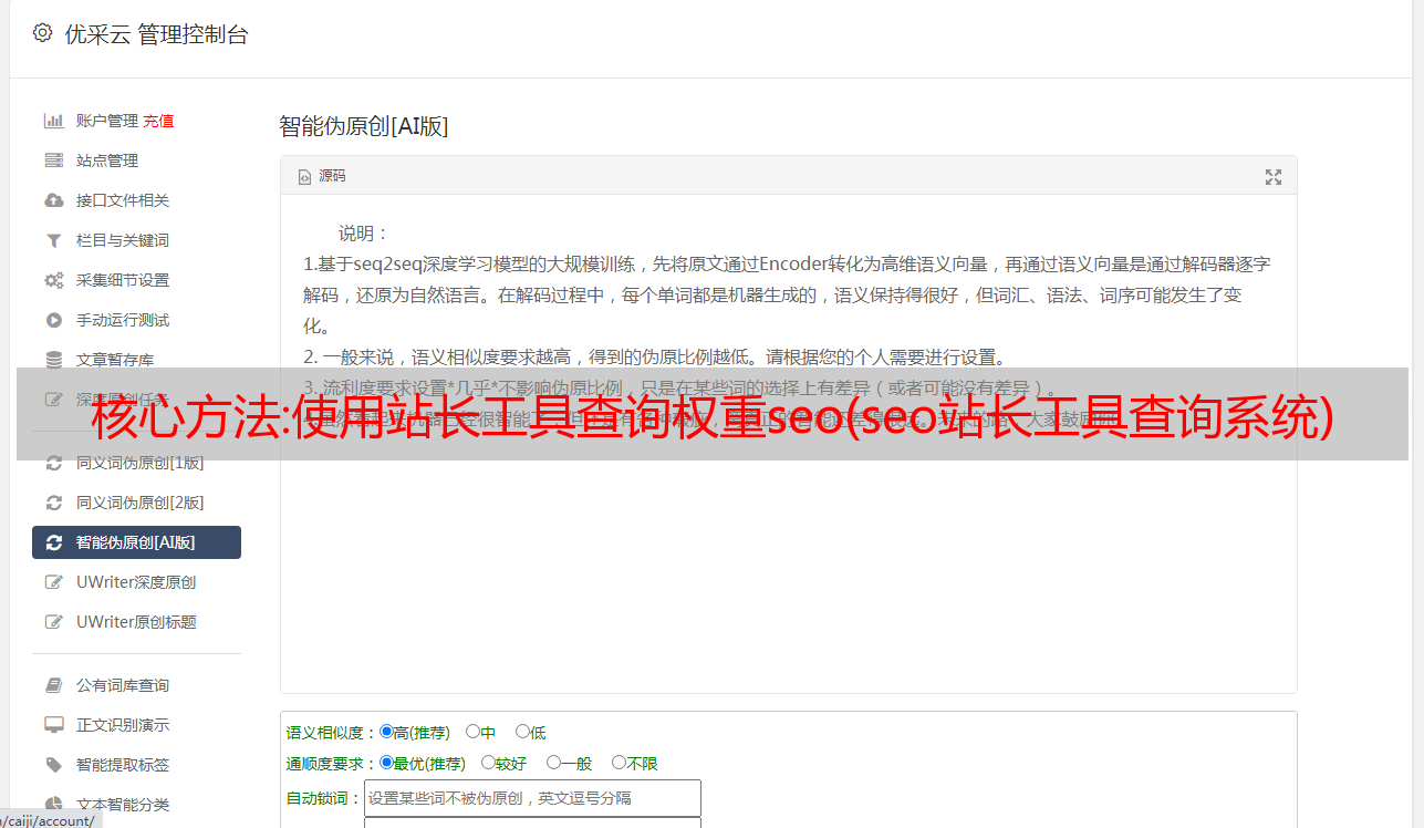 核心方法:使用站长工具查询权重seo(seo站长工具查询系统)