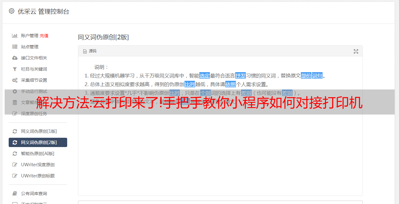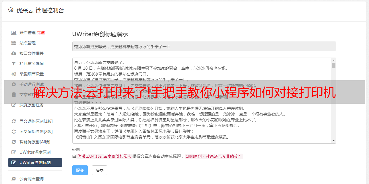 优采云 发布时间: 2022-10-31 12:20解决方法:云打印来了!*敏*感*词*教你小程序如何对接打印机