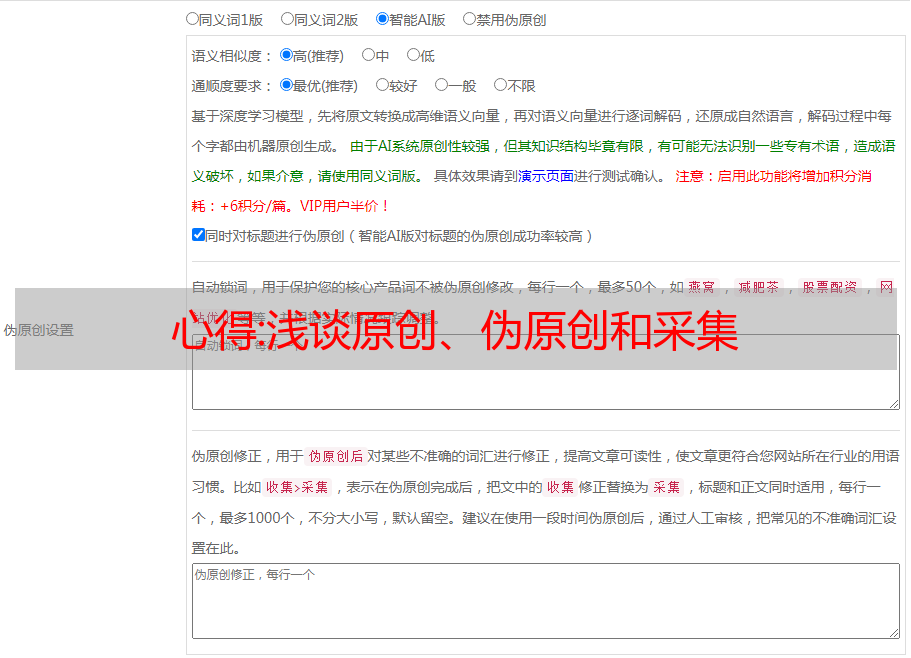 点评:伪原创比上面自己写的原创略逊一筹,因为修改后的文章可能和原作者的意思不太一样,有些句子可能会出现“废话” .