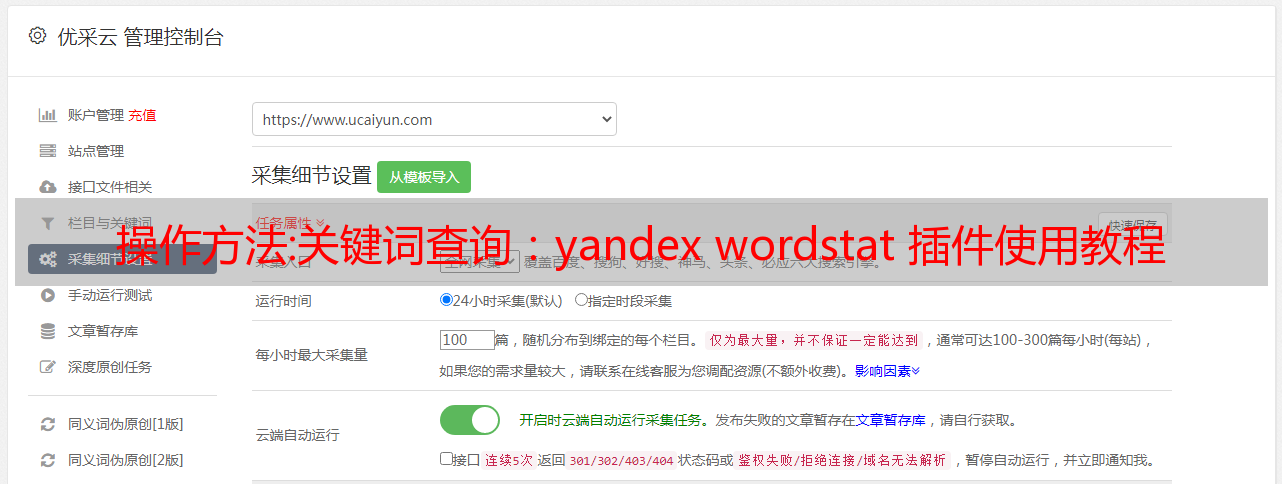 优采云 发布时间: 2022-11-02 00:19操作方法:关键词查询:yandex wordstat 插件使用教程