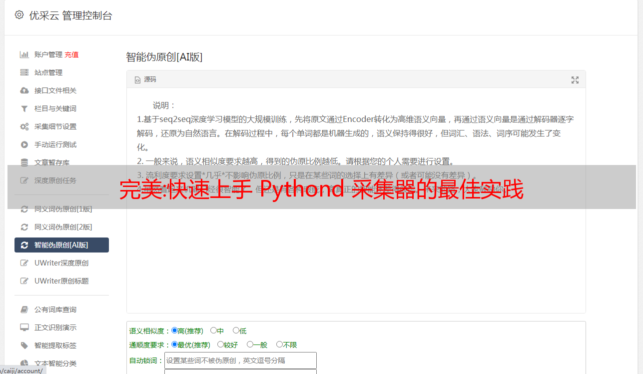 优采云 发布时间: 2022-11-02 02:29完美:快速上手 Pythond 采集器的最佳实践