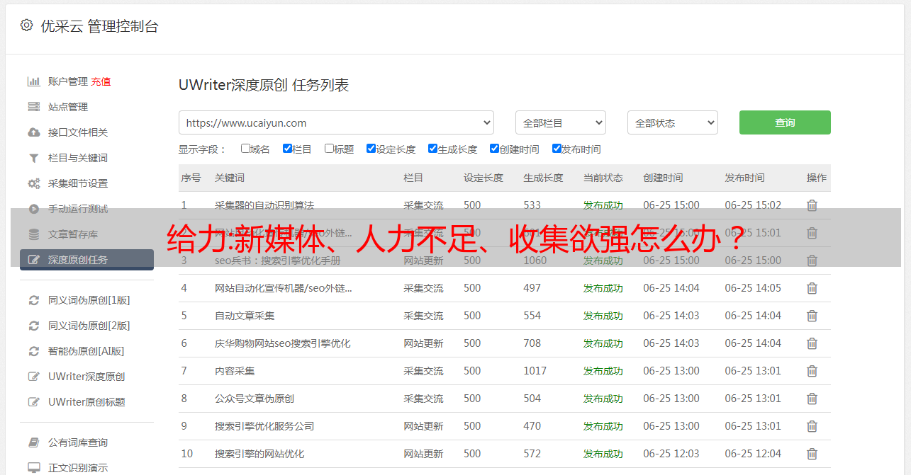 优采云 发布时间: 2022-11-02 03:10给力:新媒体、人力不足、收集欲强怎么办?