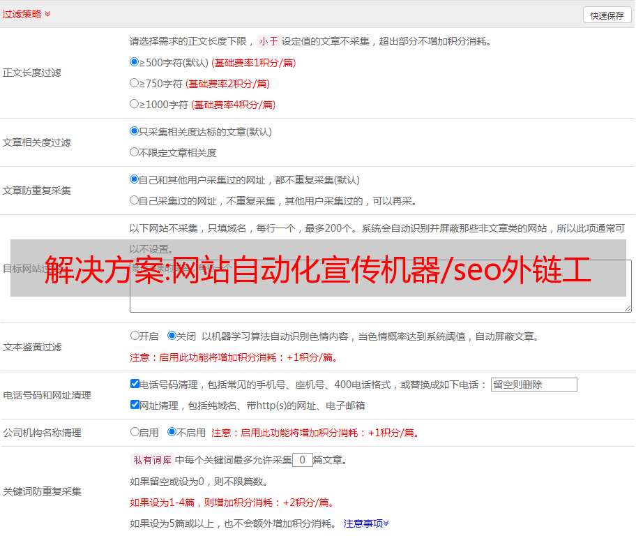 解决方案:网站自动化宣传机器/seo外链工具网络营销前期推广技巧