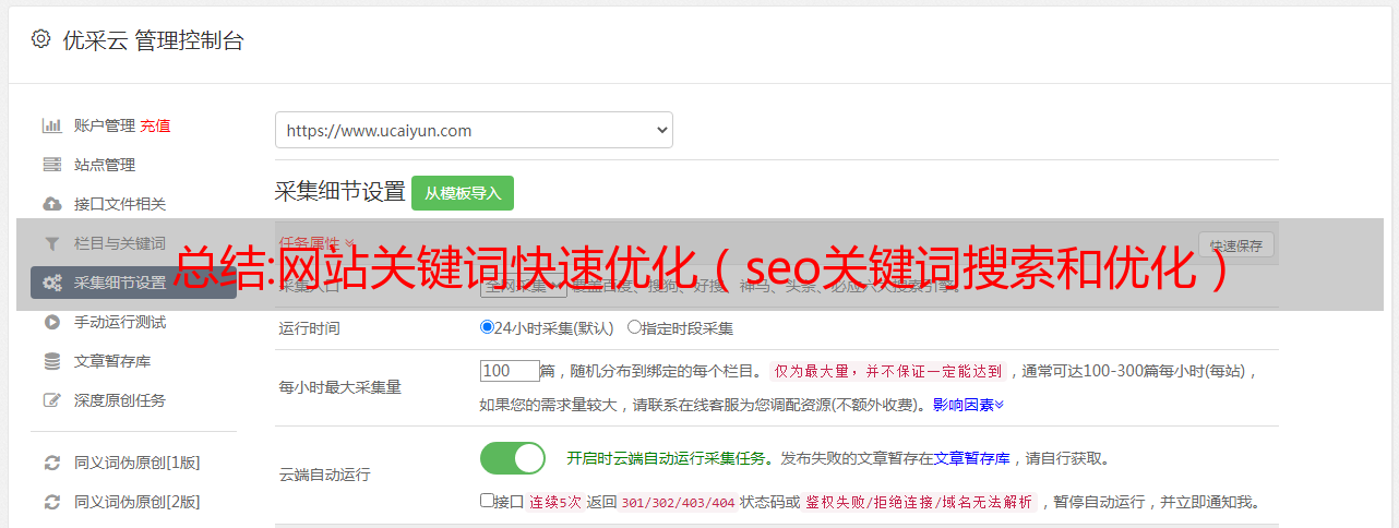 优采云 发布时间: 2022-11-03 09:20总结:网站关键词快速优化(seo关键词搜索和优化)