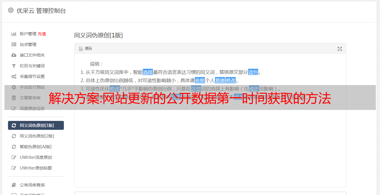 优采云 发布时间: 2022-11-03 12:26解决方案:网站更新的公开数据第一时间获取的方法