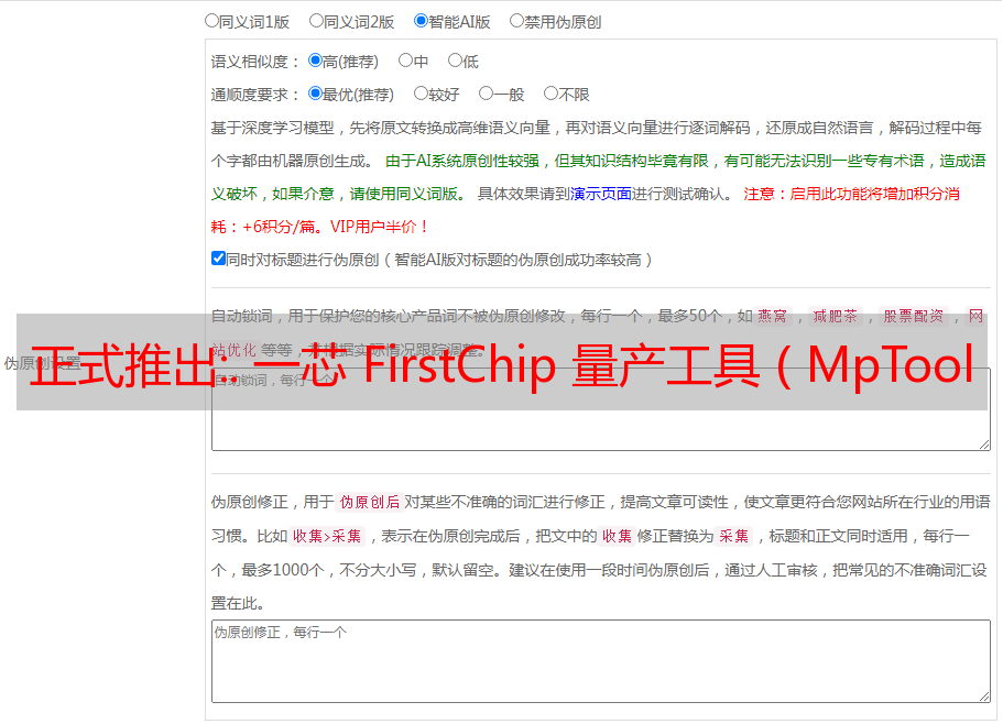 优采云 发布时间: 2022-11-03 14:50正式推出:. 一芯 FirstChip 量产工具 ( MpTool s