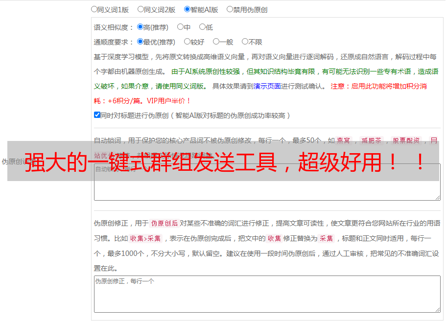 打开[插入内容]功能后,您可以将统一的内容批量插入要发表的文章中(可以插入文本内容/图片,也可以插入位置).