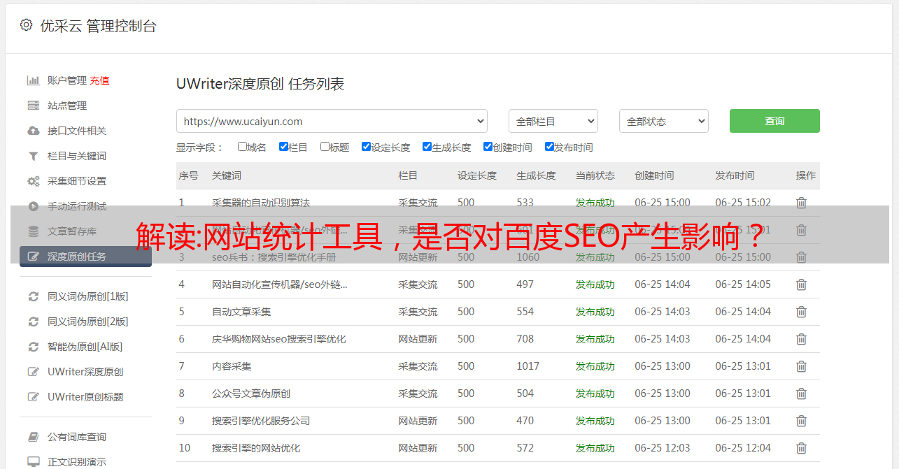 优采云 发布时间: 2022-11-03 18:47解读:网站统计工具,是否对百度SEO产生影响?