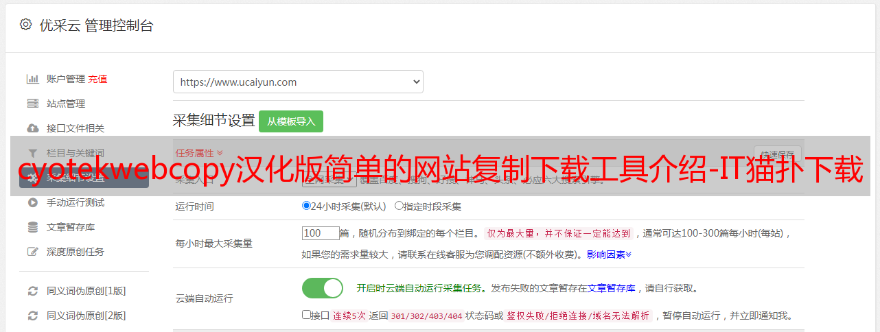 优采云 发布时间: 2021-05-27 21:17cyotekwebcopy汉化版简单的网站复制下载工具介绍-IT猫扑下载